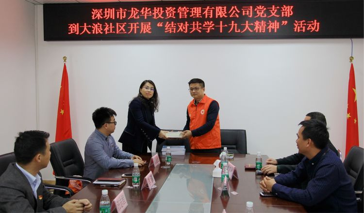 龙华投管公司党支部到大浪社区开展“结对共学十九大精神”暨"龙华清洁日"党员志愿服务活动。座谈会上,先由大浪社区党委副书记谢文波同志介绍社区基本情况,并提议以"结对共建 互学共进"活动为契机,积极建立共同推进、互动沟通的常态化工作机制,强化基层调研,共同解决社区难题,真正把"结对"做实,实现互联互动、优势互补、资源共享。