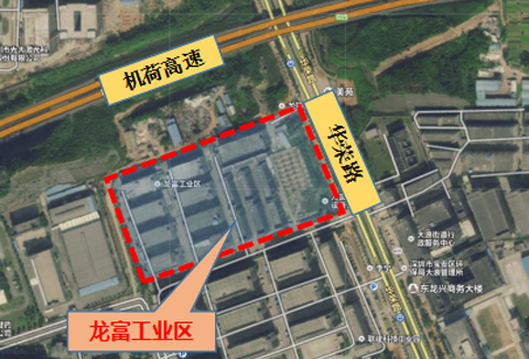 园区位于龙华区西北部,属大浪街道办辖区,北临机荷高速,东临华荣路,2公里内规划有地铁6号线大浪站、机荷高速和龙大高速等对外快速路。园区用地面积约3.9万平方米,建筑面积约5.1万平方米,其中厂房8栋(4层)约3.4万平方米、宿舍6栋(7层)约1.7万平方米。2018/04/29